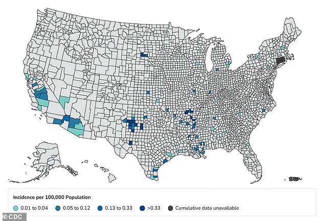 Several epidemics have occurred sporadically throughout the US since then, with the majority of cases occurring in eastern and central states such as Florida, Texas and California.
